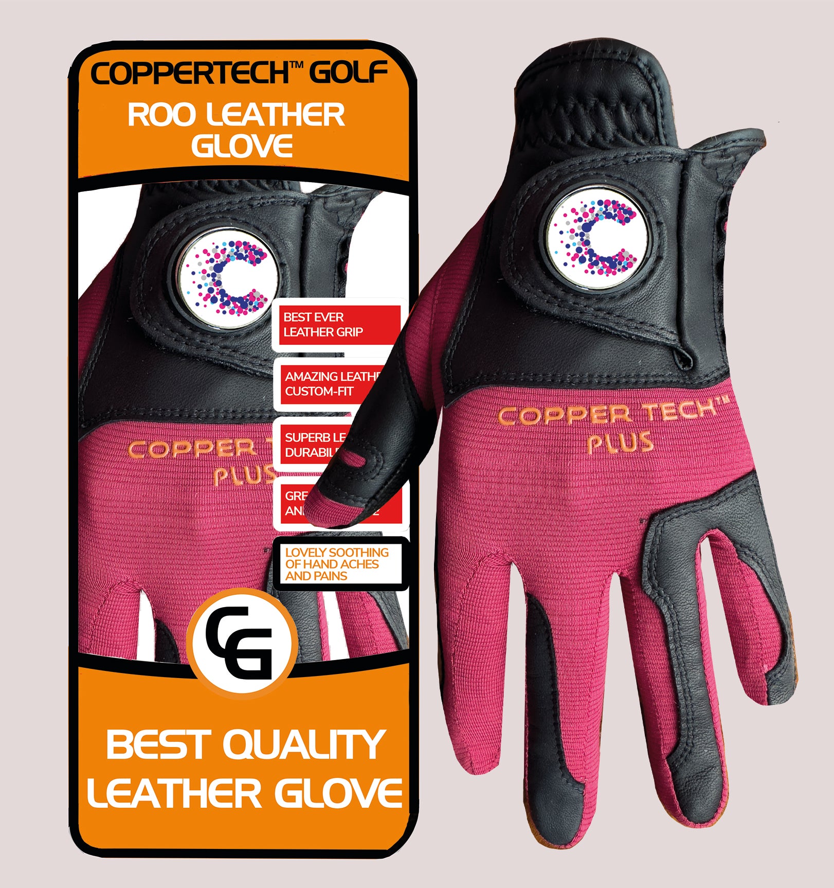 CANCER RESEARCH UK COPPERTECH PLUS ELITE GRIP ROO LEATHER RED/BLACK GOLF GLOVE