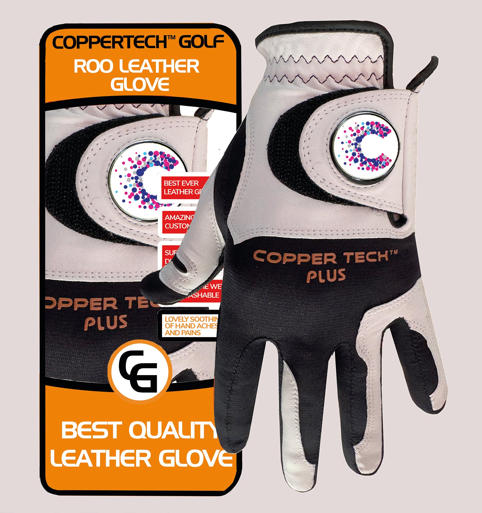 CANCER RESEARCH UK COPPERTECH PLUS ELITE GRIP ROO LEATHER BLACK/WHITE GOLF GLOVE