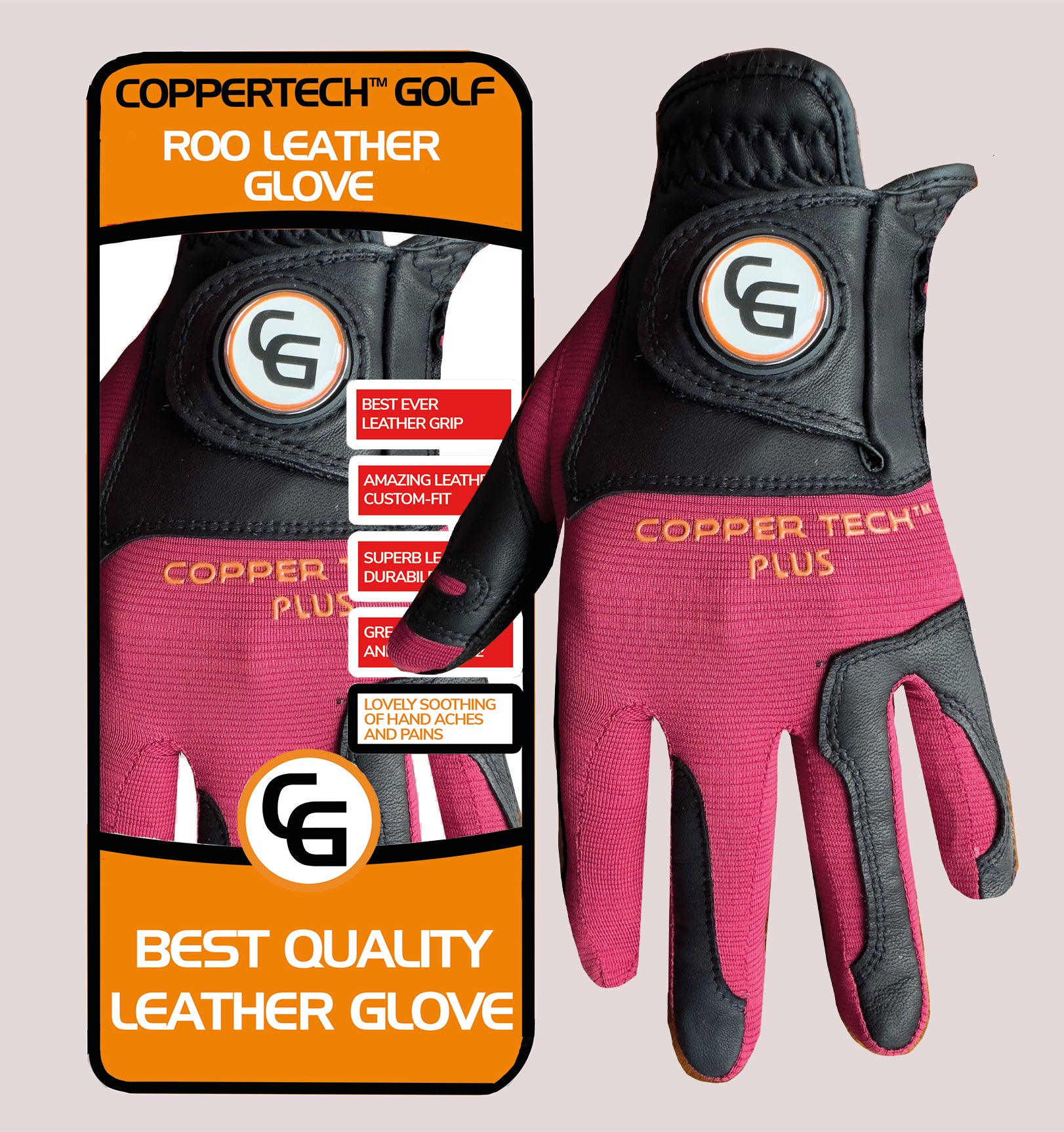 COPPERTECH PLUS ELITE GRIP ROO LEATHER RED/BLACK GOLF GLOVE