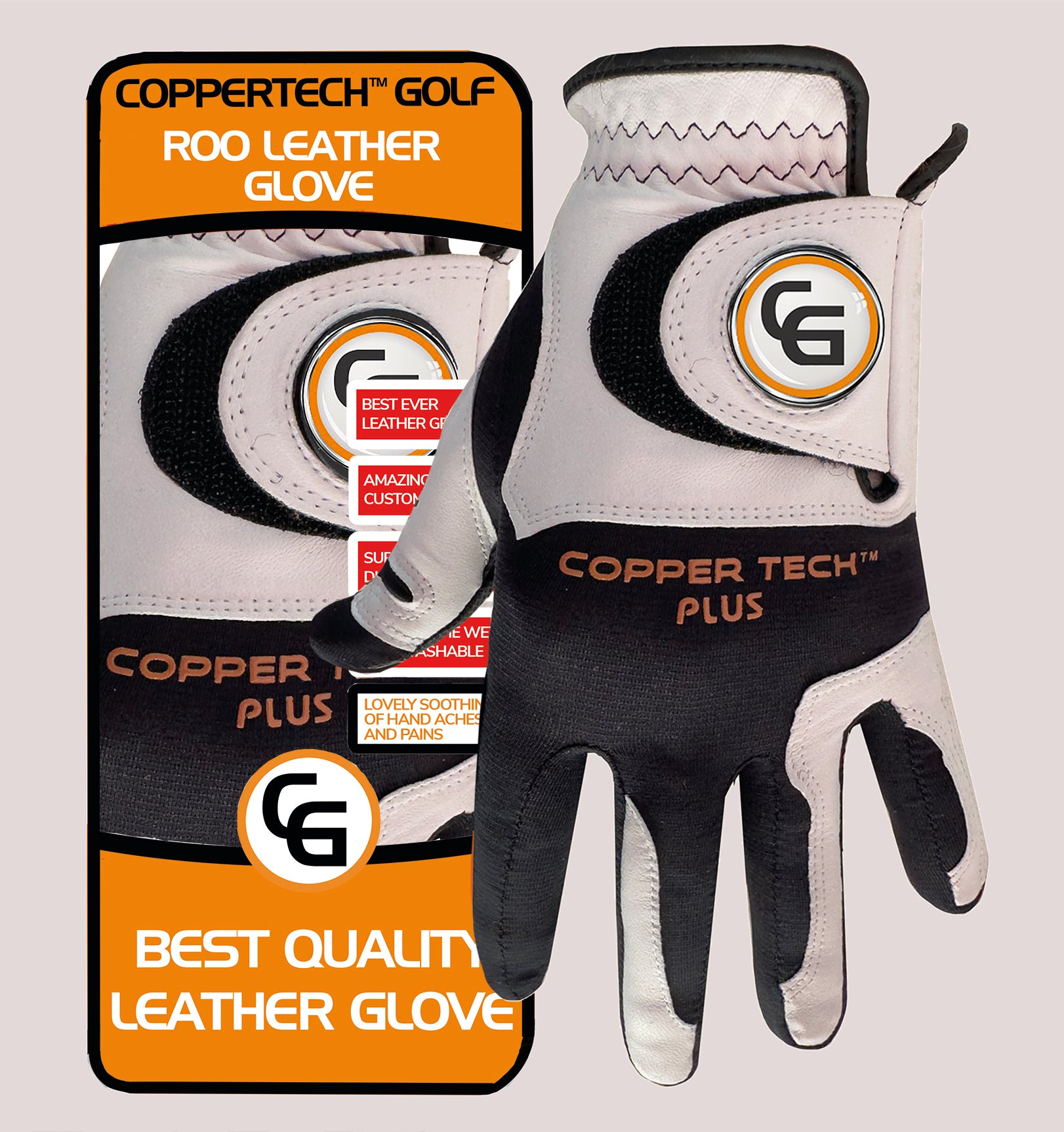COPPERTECH PLUS ELITE GRIP ROO LEATHER BLACK/WHITE GOLF GLOVE